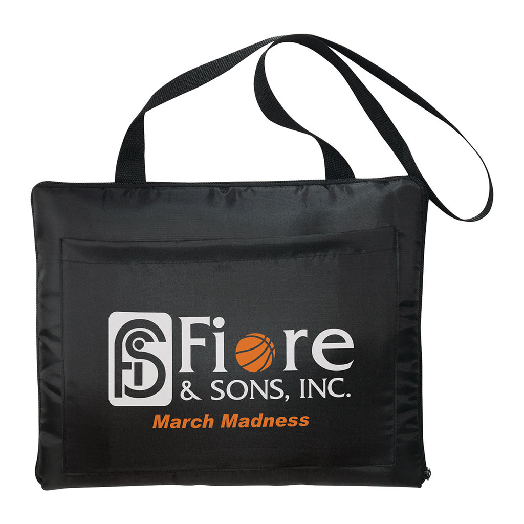 - This Game Day Stadium Blanket is perfect for picnics, as a seat cushion, or over your lap to keep warm on the bleachers. The blanket easily folds into a convenient 13" x 11" tote bag (included) with carrying straps. The bag also features a 12" x 8.5" exterior pocket, perfect for stashing your keys, phone, or any game-day essentials. The blanket's open dimensions are 50" x 60".