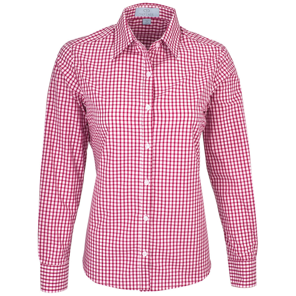 Vantage Women's Sports Red/White Easy-Care Gingham Check Shirt