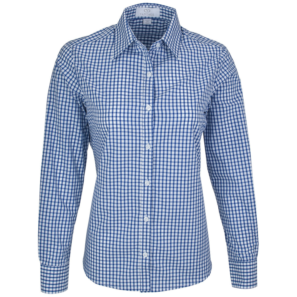 Vantage Women's Royal/White Easy-Care Gingham Check Shirt