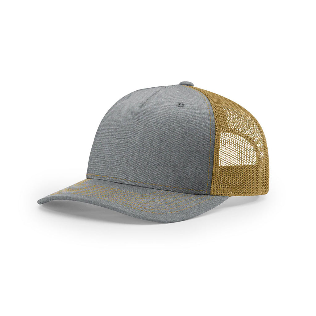 Richardson Heather Grey/Amber Gold Mesh Back Five Panel Trucker Hat