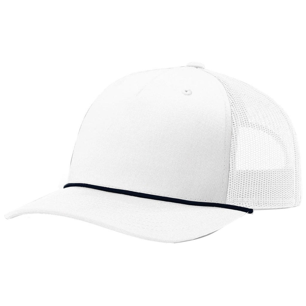 Richardson White/Navy Five Panel Trucker Hat with Rope