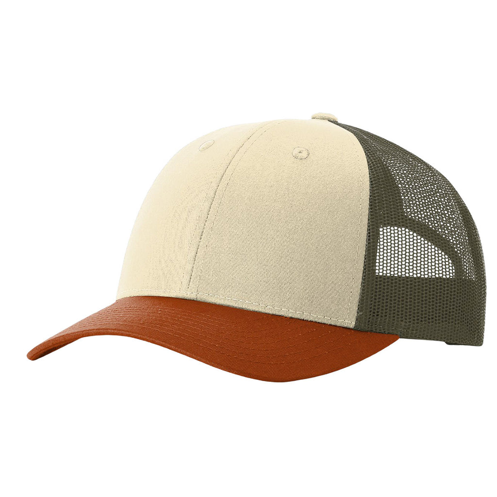 Keep the sun at bay and let your custom logo take the center stage in this Richardson Cream/Loden/Dark Orange Mesh Back Split Low Pro Trucker Hat. Customize it with an imprint of your team logo or company name to enhance corporate brand exposure. Great for athletic campaigns, hunting, sporting events and outdoor promotions. Available in an array of bold and refreshing color schemes, this hat boasts the same Richardson quality that makes the brand stand out in the crowd of headwear manufacturers.The minimum order for this product is 48 pieces.