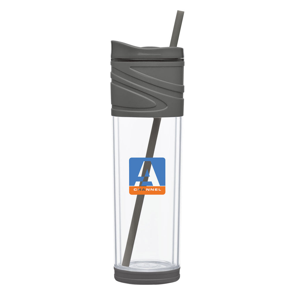 This sporty ETS Storm Grey Melrose Acrylic Tumbler 16 oz set keeps drinks cooler or hotter for long thanks to its double-wall insulation. Accented with a patterned band, this 16oz tumbler has a push-on dual-purpose lid and comes with matching straw. Featuring your company logo it will make a great promotional merchandise.