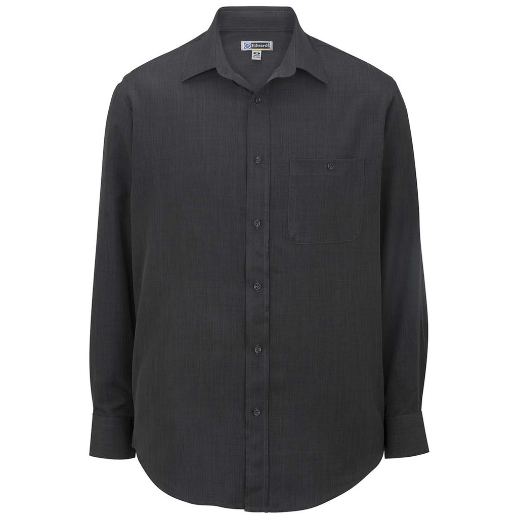 Create a custom updated look with the Edwards Men's Steel Grey Batiste Shirt in a range of classic colors. Offering a modern fit in a contemporary style, this 100% polyester shirt is perfect for those who need employee apparel that demonstrates professionalism. Add a corporate embroidery to the long sleeve button up with chest pocket and pattern accents. Ideal for layering with a suit jacket as part of corporate uniforms the shirt is wrinkle resistant, offers soil release, and moisture wicking. Your custom logo will look beautiful on these shirts that offer the ability to be paired with jeans, slacks, or almost any type of attire you can imagine.Highlights