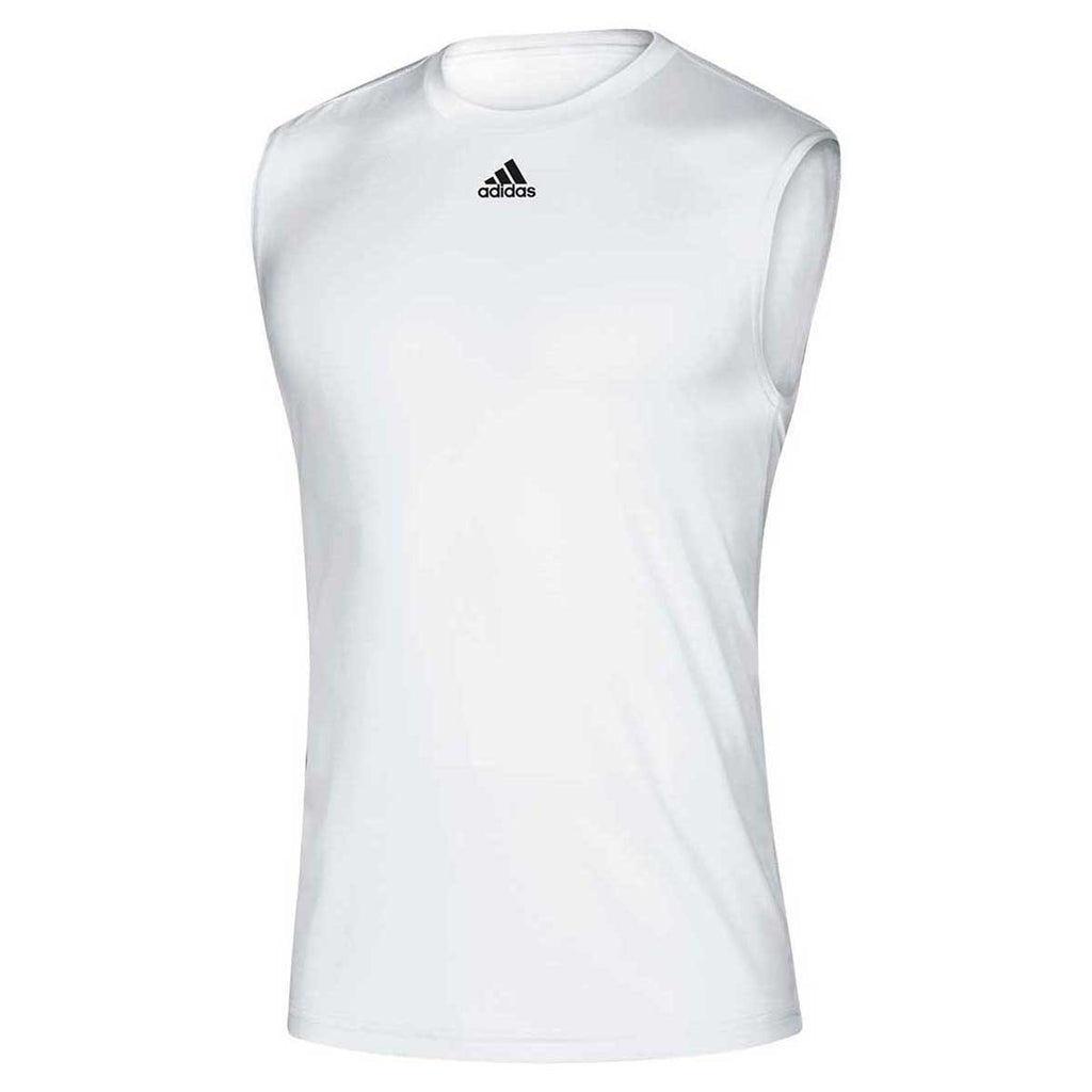 A custom sleeveless tee has innumerable uses and the best can be found in the adidas Men's White Creator Sleeveless Tee. Made of 100% polyester with moisture wicking performance material throughout, this sleeveless tee looks great during a pick-up game of basketball or with a company logo at a team event. The adidas logo rests comfortably on the center chest to demonstrate the quality of this versatile piece. Offering a regular fit, this sleeveless tee comes in black, grey or white to fit your styling needs. Place an order today to enjoy the warm weather while looking your best.
