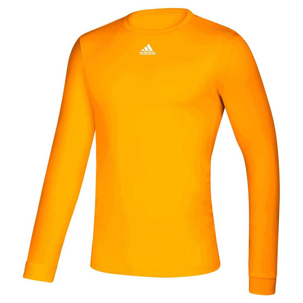 adidas Men's Collegiate Gold Creator Long Sleeve Tee will carry your heat transfer company logo with pride in a wide range of colors. A simple, yet iconic adidas logo rests front and center on the chest on this 100% polyester with a regular fit. Complete with moisture wicking performance throughout, the set in sleeves will not impede movement whether you are moving boxes or participating in a team event. Perfect as part of athleisure wear or to layer on chilly days, this long sleeve tee is a must have addition for every wardrobe.