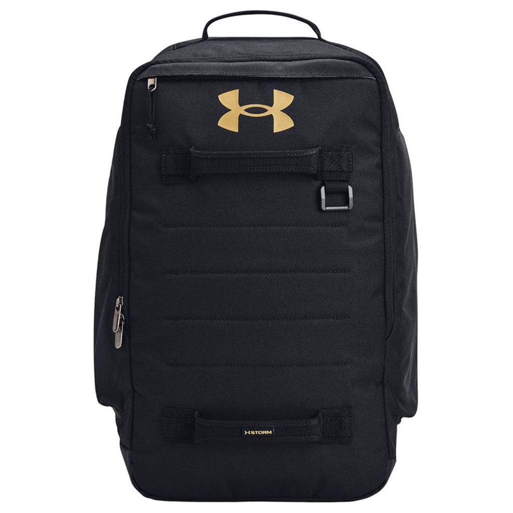 Create a custom Under Armour Black/Black/Metallic Gold Contain Backpack with embroidery for a bag that keeps athletes more organized. This bag is big enough to carry what you need with water-resistant technology, a lined 15-inch laptop sleeve, and organizational pockets. Grab and go with this backpack that can be taken to work, school, the gym and across the country.Highlights