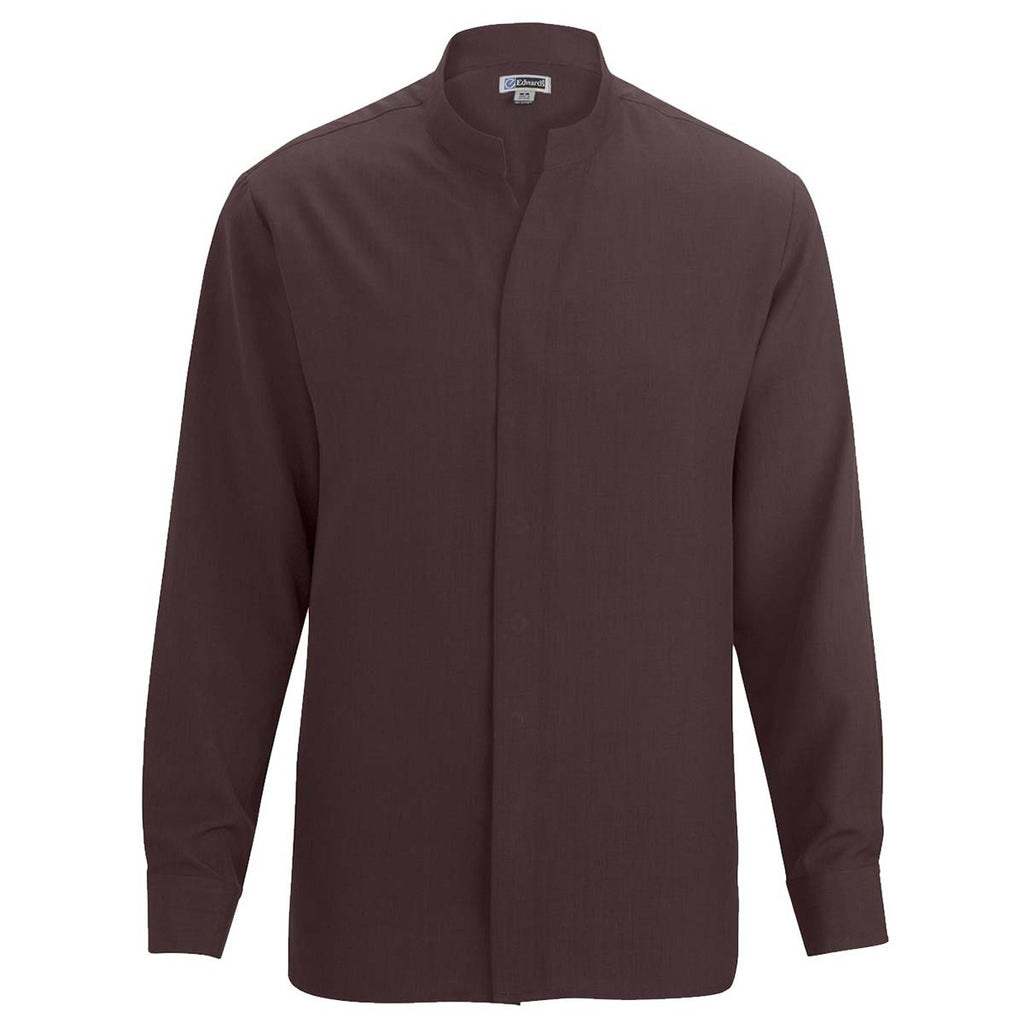Create a custom, refined look with the Edwards Men's Chocolate Stand-Up Collar Shirt in a wide range of colors. Made of 100% polyester this modern fitting shirt would make excellent hospitality apparel with the clean lines, open neckline and stand-up collar. Also ideal as employee apparel for those working as wait staff or in the kitchen as the shirts are Tuff-Tested with moisture wicking and soil release fabric. These rental ready shirts can display your company logo or embroidered corporate brand with pride. Easy to launder, these shirts will stand the test of time and repeated use.Highlights