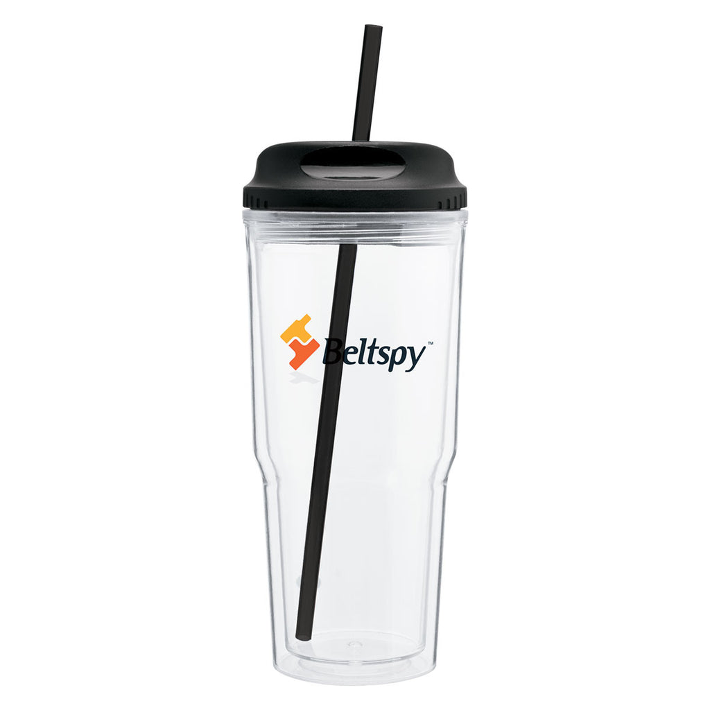 Boasting a curvy shape and bright lid, this transparent ETS Black Gulp Acrylic Tumbler 24 oz has an ample 24oz capacity to fulfill your hydration needs. It features double-walled design for temperature control and durability. Comes with snap-fit lid and straw. Add your logo on it and gift it to individuals or employees.