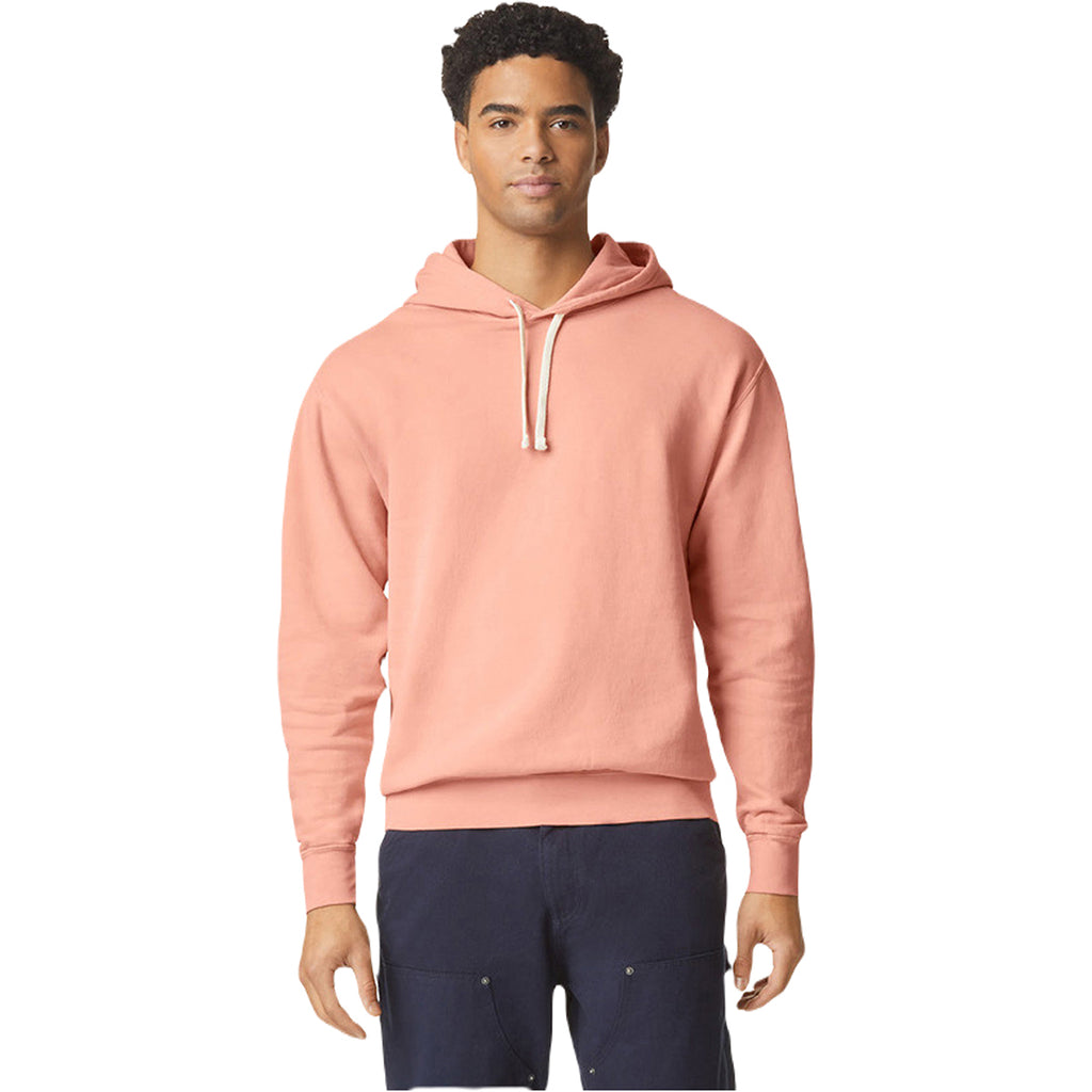 Comfort Colors Unisex Peachy Lightweight Cotton Hooded Sweatshirt with a corporate logo is a simple way to add to your apparel offerings. The attached drawstring hood will keep you protected and warm in cooler weather. Great for working out, sporting events, or daily wear. Place an order with your choice of design.Highlights