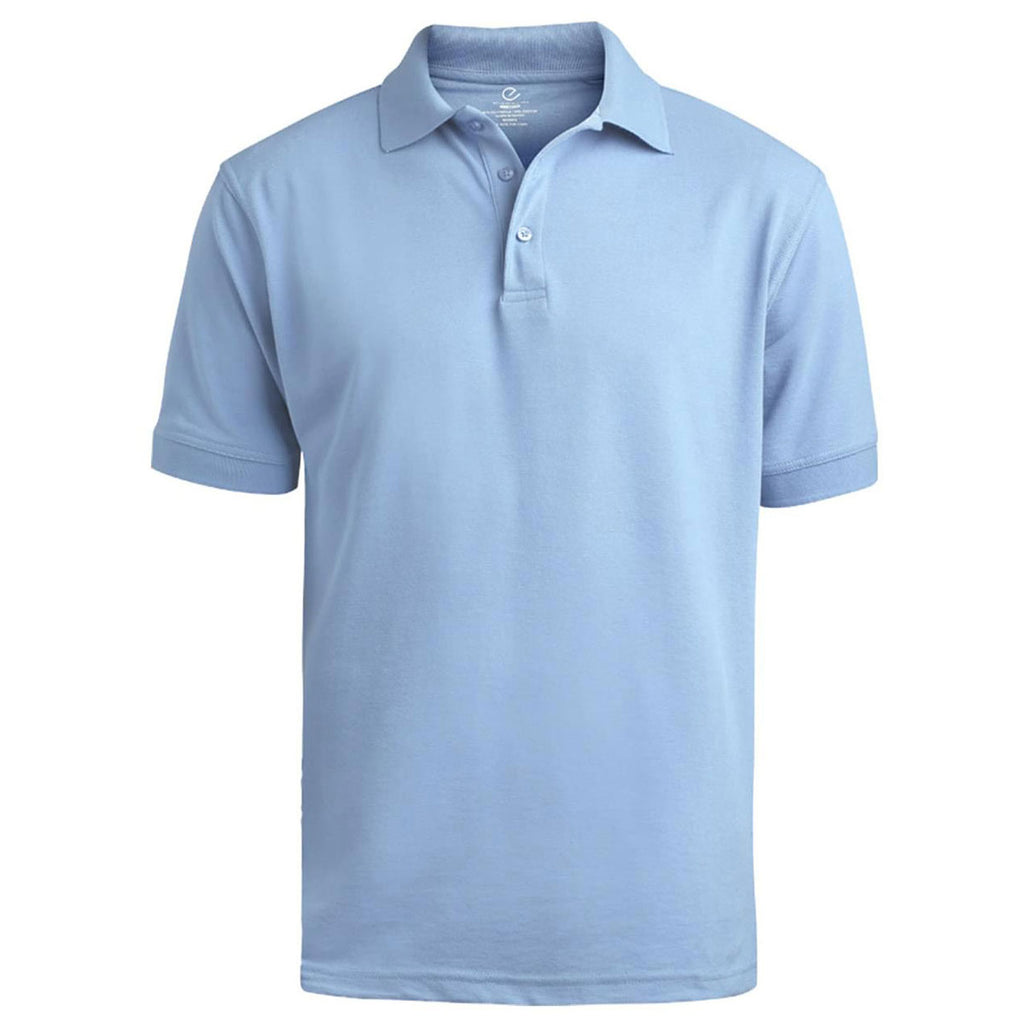 Edwards Men's Blue Soft Touch Pique Polo with embroidery is the ideal option as employee apparel for many industries. The short sleeve polyester cotton blend is made to be worn daily and cleaned by industrial laundry or an at home machine. Add a company logo to show affiliation on the shrink resistant fabric that is also fade and wrinkle resistant. An extended tail offers extra coverage so bending and stretching during work hours is not a concern. Try a custom logo to create a polo that can work as team gear, show team support, or just build your own customized wardrobe.Highlights