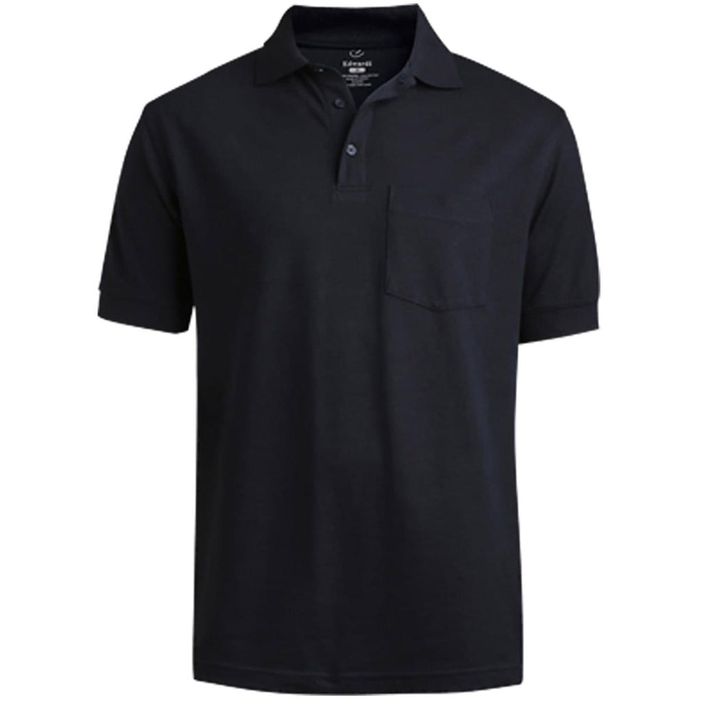 Cover all your bases with a custom Edwards Unisex Navy Soft Touch Pique Polo with Pocket. This simple, yet stylish polo is made of a polyester cotton blend that is soft to the touch and ready for daily wear. Made for hard work, the short sleeve polo is shrink, fade, and wrinkle resistance for easy wear and care. A ribbed collar and sleeves mean this polo stays put as you bend, stretch, and lift throughout the day. An extended tail on the traditional fitting polo means extra coverage to make interacting with clients and customers a breeze. A left chest pocket keeps small items at hand on this uniform type polo that will be a big hit with employees.Highlights
