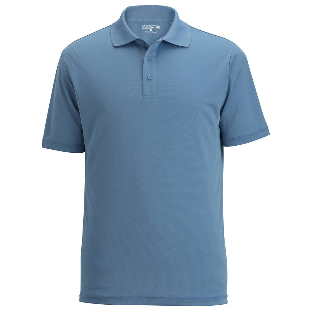 Your company logo will get noticed on the Edwards Men's Marine Blue Mini-Pique Snag-Proof Polo when used as employee apparel. This short sleeve polo is comfortable year-round whether worn alone or layered with other company gear. Made of 100% polyester mini-pique in a lightweight design, the polo is moisture wicking and machine washable with straight hemmed bottom and sleeves. Consider a custom logo to create a fun option for a cause or to show team support with a polo that is fashionable, yet functional.Highlights