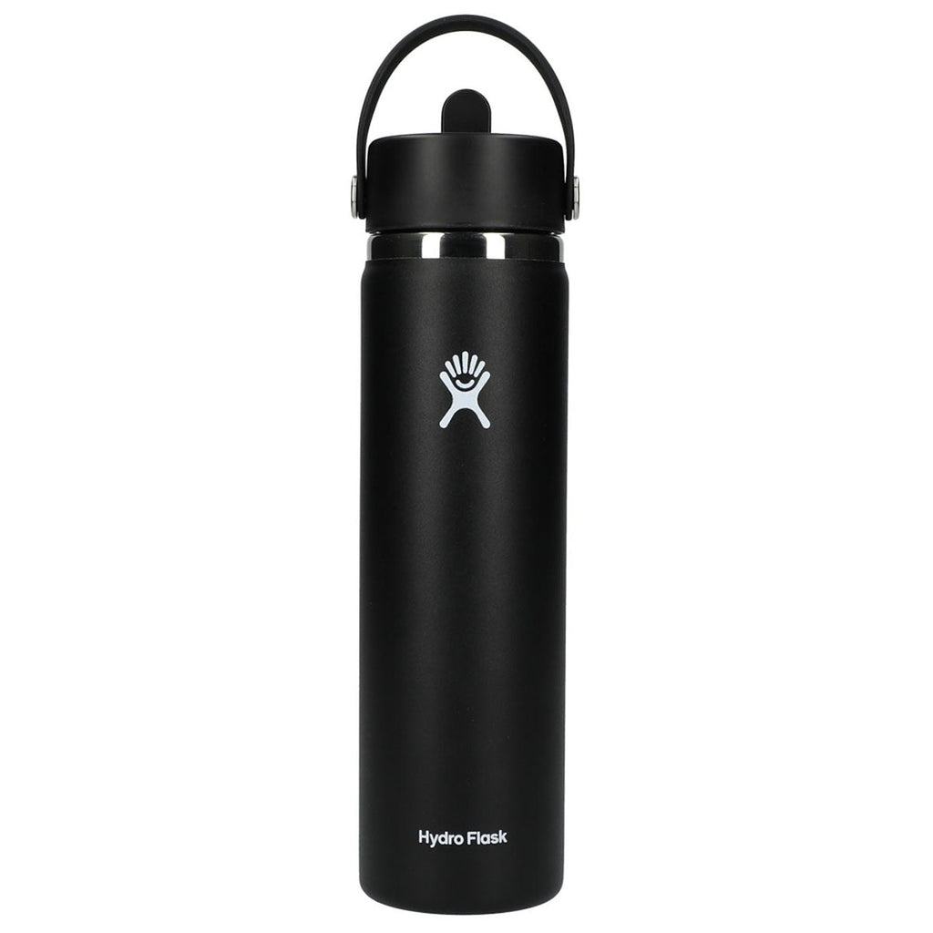 48-Hour Hydro Flask Black Wide Mouth 24oz Bottle with Flex Straw Cap