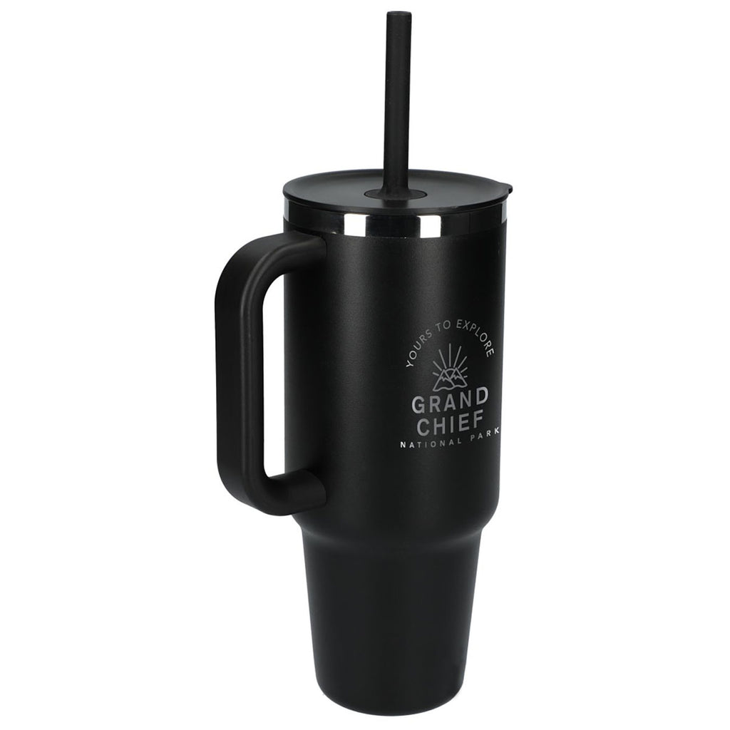 The new Hydro Flask Black All Around Travel Tumbler 40oz with Straw is here to hydrate more and refill less. A very comfortable, extremely durable handle takes it to the next level, and the large size can go anywhere, even fitting most cupholders. TempShield double-wall insulation ensures cold stays cold, and the flexible straw is easy to sip any which way, The Press-In Straw Lid is Snug, secure, and splash-resistant. The Color Last powder coat is durable, and sweat-free. Made with 18/8 pro-grade stainless steel for durability, pure taste and no flavor transfer. Reach out and place a custom order by adding a corporate logo.