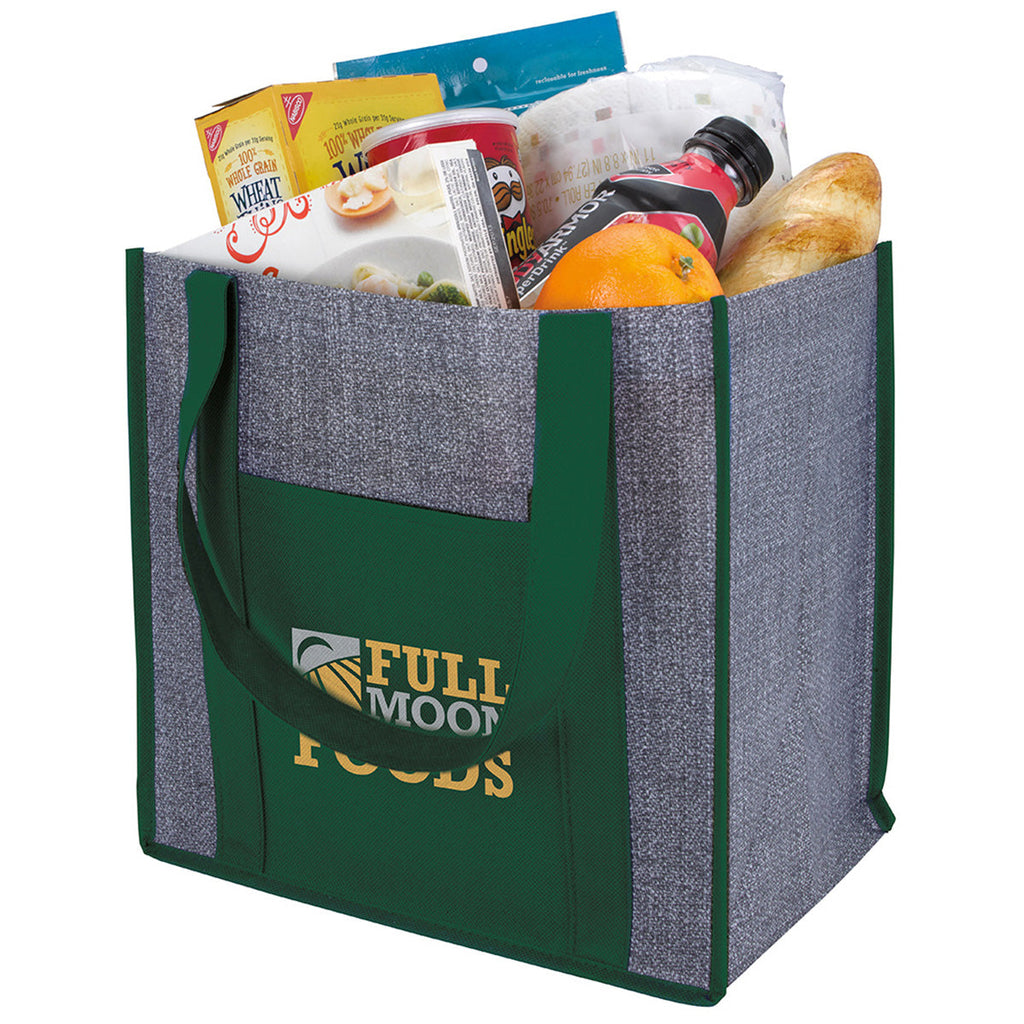 48-Hour Good Value Hunter Green Laminated Heathered Non-Woven Grocery Tote