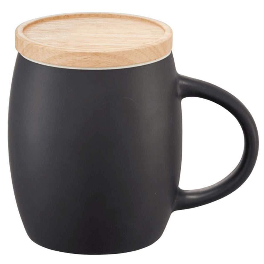 Leed's Black/White Hearth Ceramic Mug with Wood Lid/Coaster 15oz