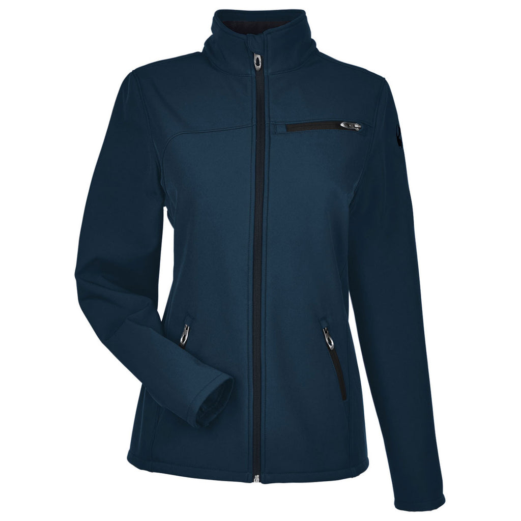 Classic meets fashion apparel with the Spyder Women's Frontier Transport Softshell Jacket. This is the type of jacket that can easily be worn in the boardroom or working outdoors due to the sleek, stylish design with small accents that make all the difference in the world. Perhaps you need employee apparel for waitresses in a high end establishment or jackets for instructors that need to be indoors and out. Simply add your embroidered logo and know that you have a quality product. Help your company stand out at a trade show or recruiting event as these jackets are being worn and on display. Start your order today to be prepared for your next big event.