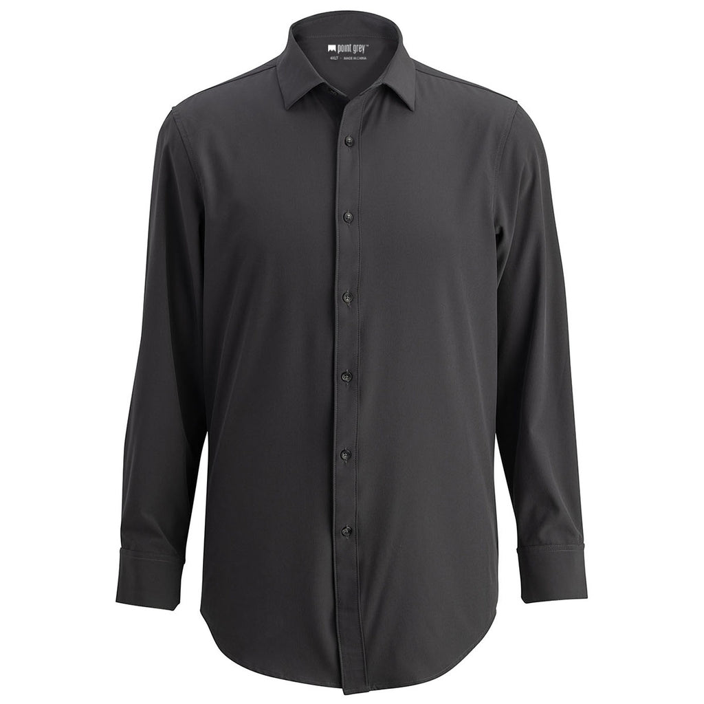 Choose a custom logo for the Edwards Men's Forged Iron Point Grey Shirt to create a unique look for the office or a night out on the town. The luxury performance shirt with long sleeves and fold-down collar creates a sleek look that can be worn alone or paired with a jacket to create a professional look. Place your order today.