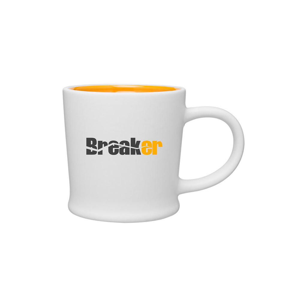 A sleek ETS White/Yellow Turno Ceramic Mug With Rigid Interior 12 oz with a wide base that promotes stability. It has a matte white exterior and contrast glossy interior for a chic touch. Add your brand's logo or message on it and make this mug a branded business gift or corporate giveaway for clients and employees.