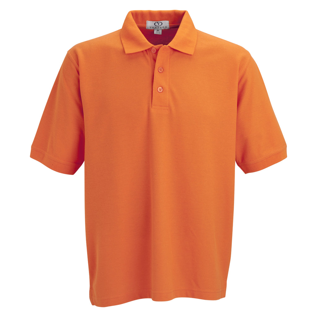 Vantage Men's Orange Soft-Blend Double-Tuck Pique Polo
