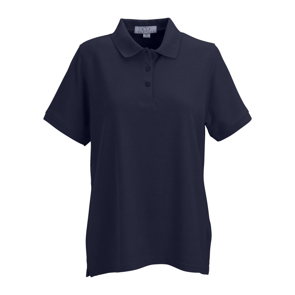 Vantage Women's Navy Soft-Blend Double-Tuck Pique Polo