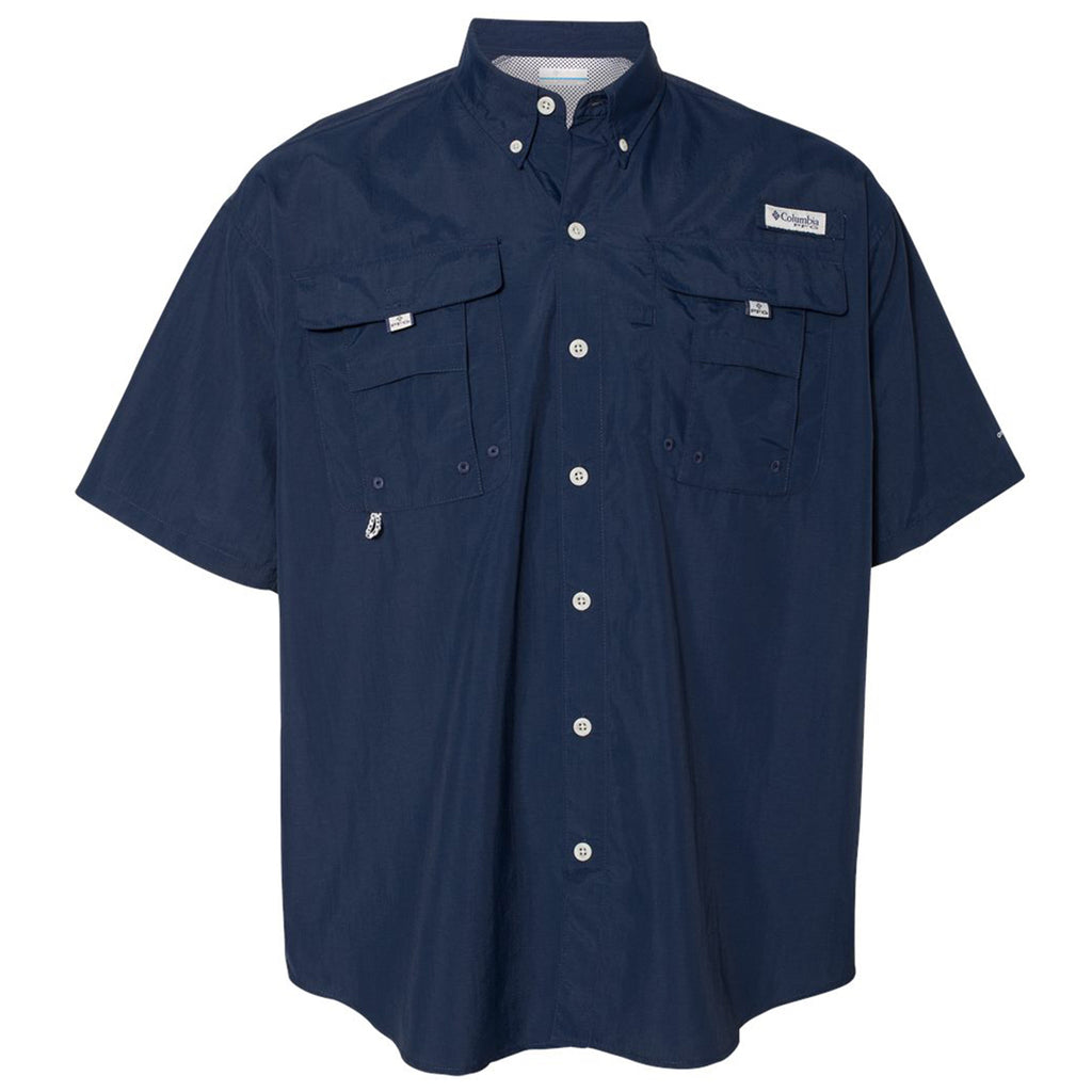 A custom Columbia Men's Collegiate Navy PFG Bahama Short Sleeve Shirt is ready for work, play and everything in between. The Tactel nylon shirt with quick dry technology and UPF 50 sun protection has a rod holder and utility loop so you can work all morning and fish the afternoon away with ease. Great for outdoorsmen of all types.