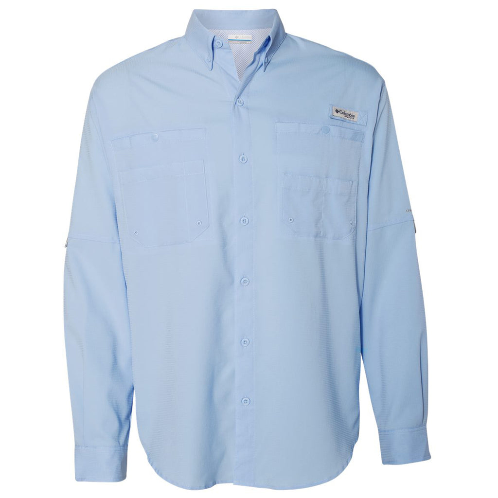 Create a corporate logo for the Columbia Men's Sail PFG Tamiami Long Sleeve Shirt. This all-around polyester ripstop shirt offers Omni-SHADE UPF 40 sun protection, Omni-WICK quick dry, and roll-up sleeves to wear year-round as you work your hardest or enjoy the Great Outdoors using the built-in rod holder.This product cannot ship outside of the United States.
