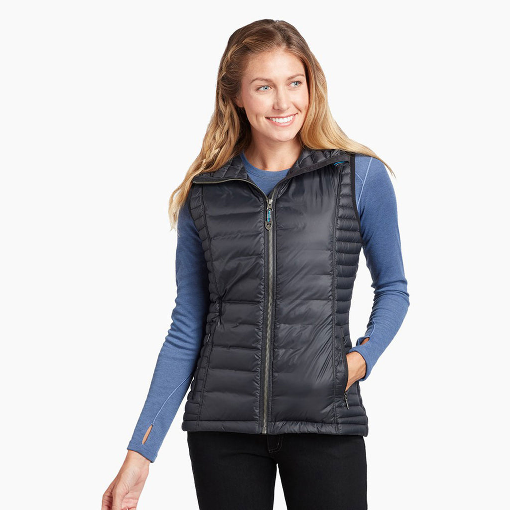 Enjoy the great outdoors in a custom embroidered KUHL Women's Raven Spyfire Vest in a range of color options. Made of 100% MIKROTEX on the main body, a TUFFLEX overlay, and 100% goose down fill, this vest with a custom logo is the perfect addition to employee apparel or just to wear to be protected from the weather. With reinforced shoulder and underarm panels for better climate control, this vest would be ideal as corporate uniforms for those who needed to be outdoors and indoors to work. Place your order today to be prepared for whatever Mother Nature throws your way.Highlights