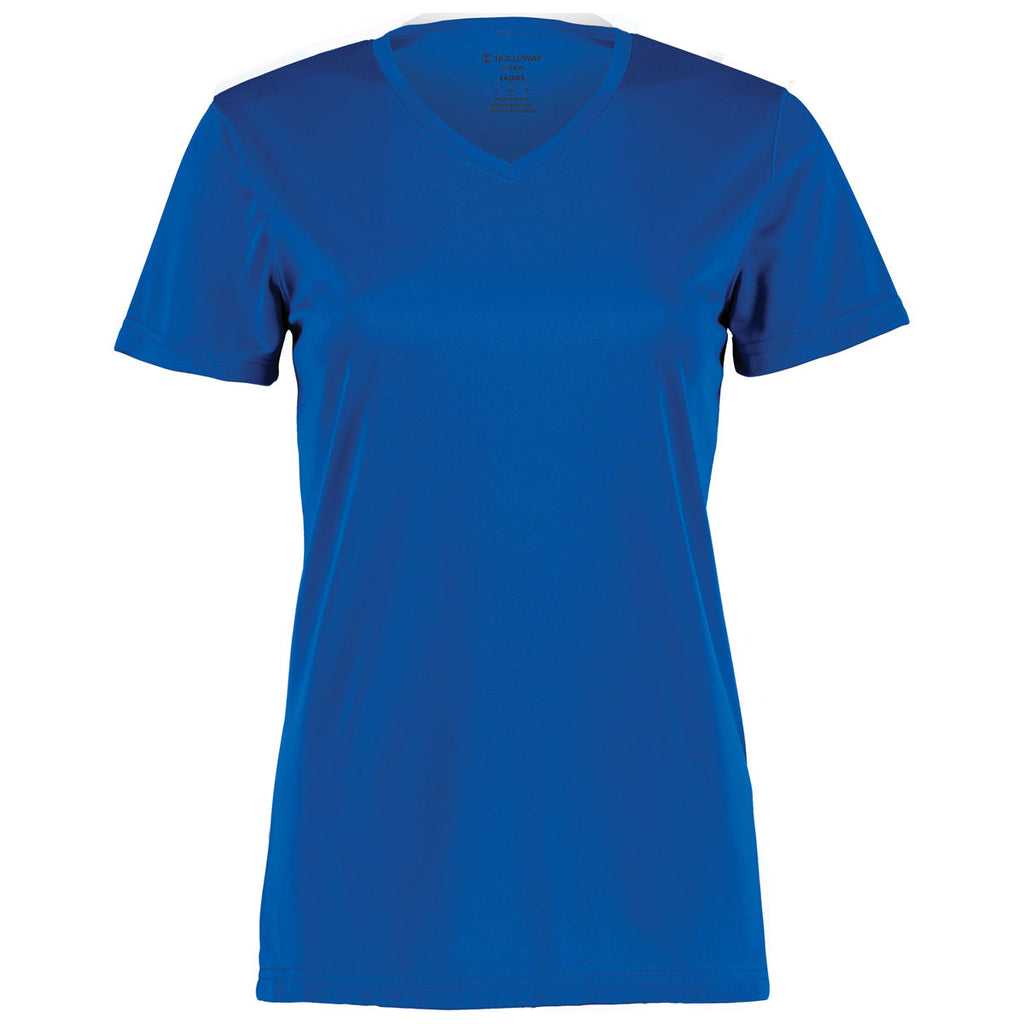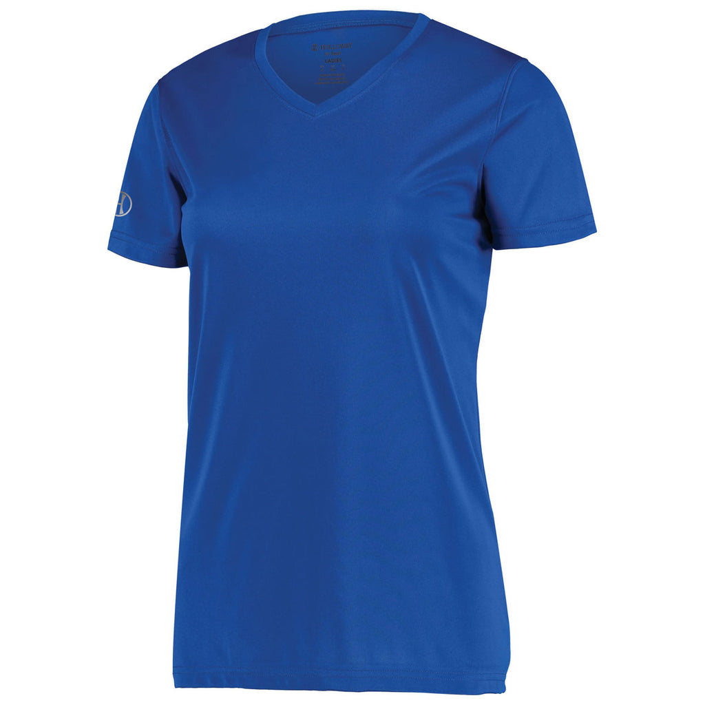 Custom screen print will pop on the Holloway Women's Royal Momentum Tee. This simple, straightforward tee is a must have as daily comfort wear that can be dressed up or down as needed. A basic tee is a wardrobe staple that can serve many purposes. Add a company logo to use as part of a uniform or a custom design to show affiliation with a group, club, or team. The feminine fitting tee is color secure, wicks moisture, and is odor resistant with V-neck collar and set-in sleeves. The possibilities are endless with this tee, so place your order right away.Corresponding Men's Style:Holloway Men's Royal Momentum Tee
