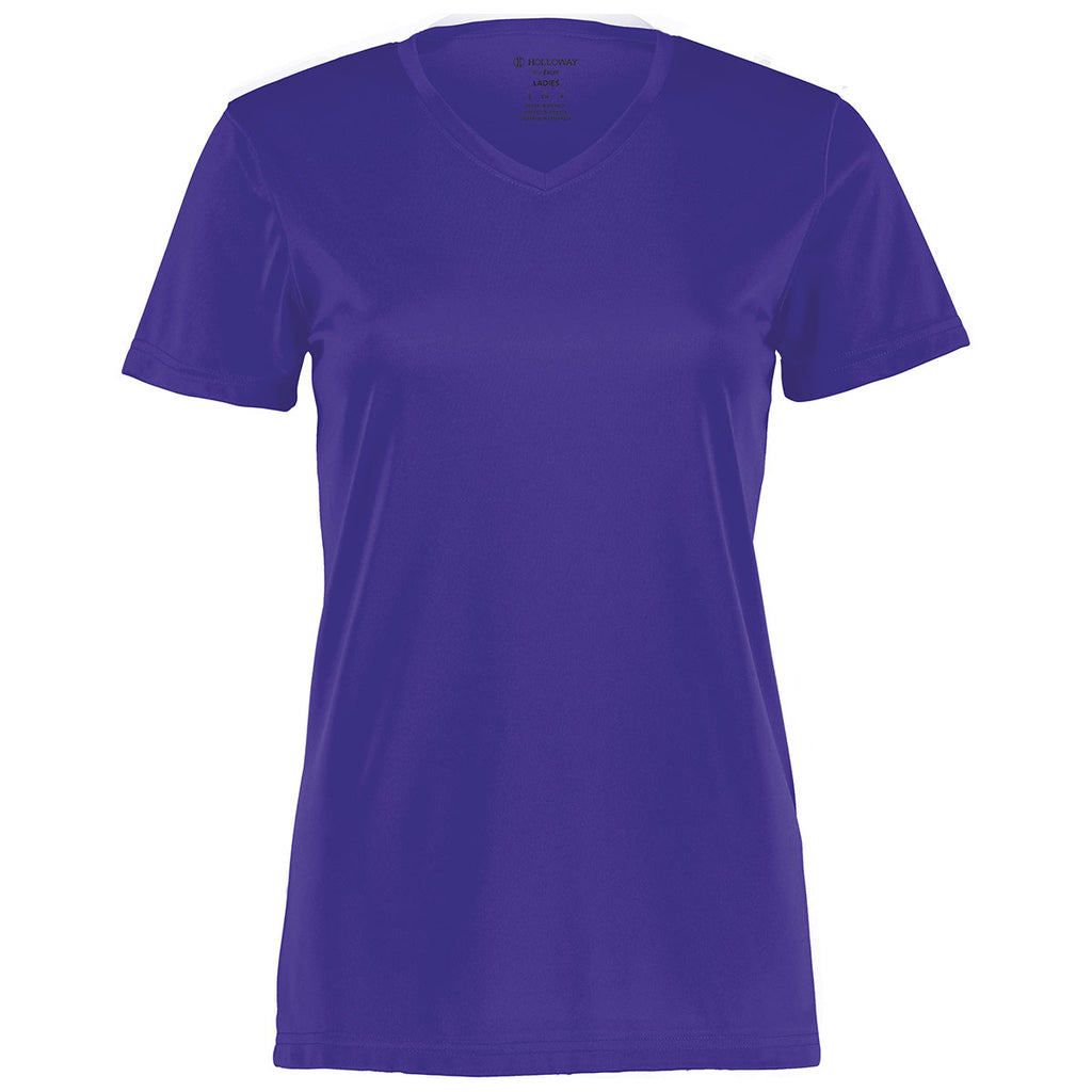 Custom screen print will pop on the Holloway Women's Purple Momentum Tee. This simple, straightforward tee is a must have as daily comfort wear that can be dressed up or down as needed. A basic tee is a wardrobe staple that can serve many purposes. Add a company logo to use as part of a uniform or a custom design to show affiliation with a group, club, or team. The feminine fitting tee is color secure, wicks moisture, and is odor resistant with V-neck collar and set-in sleeves. The possibilities are endless with this tee, so place your order right away.Corresponding Men's Style: Holloway Men's Purple Momentum Tee