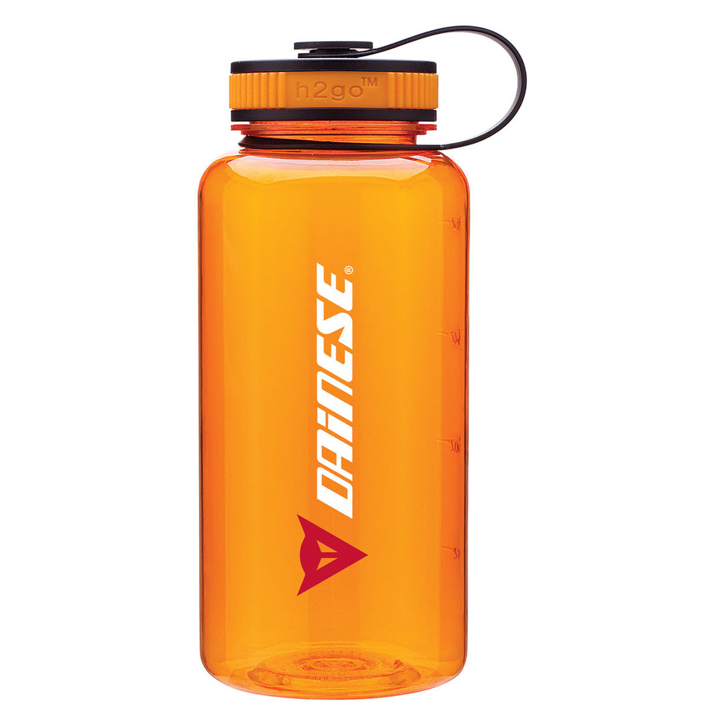 For health savvy, this H2Go Tangerine Wide Bottle 34 oz is BPA-free and will easily snuggle into cup holders. It has an attachment for clipping onto backpacks and a lid accentuated with silicon band. Let it embody your logo for next marketing campaign to make your brand known around the wider world!