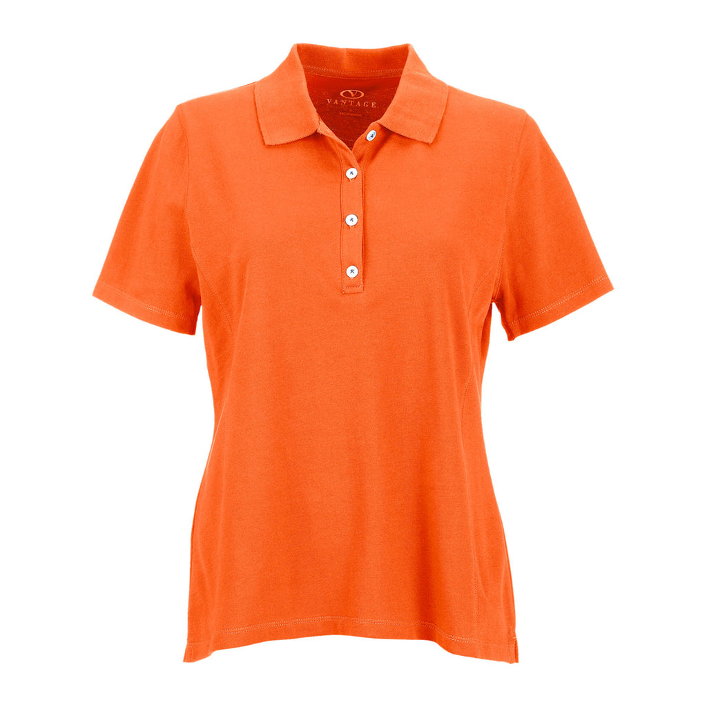 Enjoy the feel and appearance of the embroidered Vantage Women's Orange Perfect Polo, which uses fine gauge pique to create strong corporate apparel for all occasions. Extra length in the body offers you more fabric to tuck the shirt in for formal corporate events. A little spandex enhances your mobility to give you a polo that works well in several different sports settings. Wear the versatile polo with a pair of khakis and pair the chic company garment with dress slacks. Pure combed cotton feels super soft against the skin to ensure you feel fresh throughout the day. Add a custom logo and watch recognition of your products reach more customer prospects.Corresponding Men's Style: Vantage Men's Orange Perfect Polo