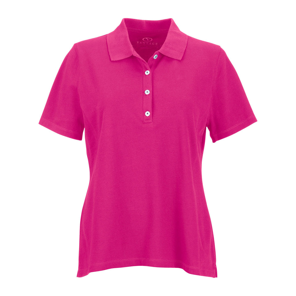 Enjoy the feel and appearance of the embroidered Vantage Women's Berry Pink Perfect Polo, which uses fine gauge pique to create strong corporate apparel for all occasions. Extra length in the body offers you more fabric to tuck the shirt in for formal corporate events. A little spandex enhances your mobility to give you a polo that works well in several different sports settings. Wear the versatile polo with a pair of khakis and pair the chic company garment with dress slacks. Pure combed cotton feels super soft against the skin to ensure you feel fresh throughout the day. Add a custom logo and watch recognition of your products reach more customer prospects.Highlights