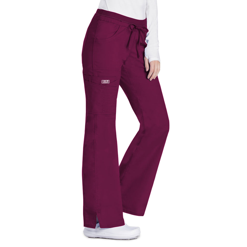 Cherokee Women's Wine Workwear Premium Core Stretch Jr. Fit Low-Rise Drawstring Cargo Pant