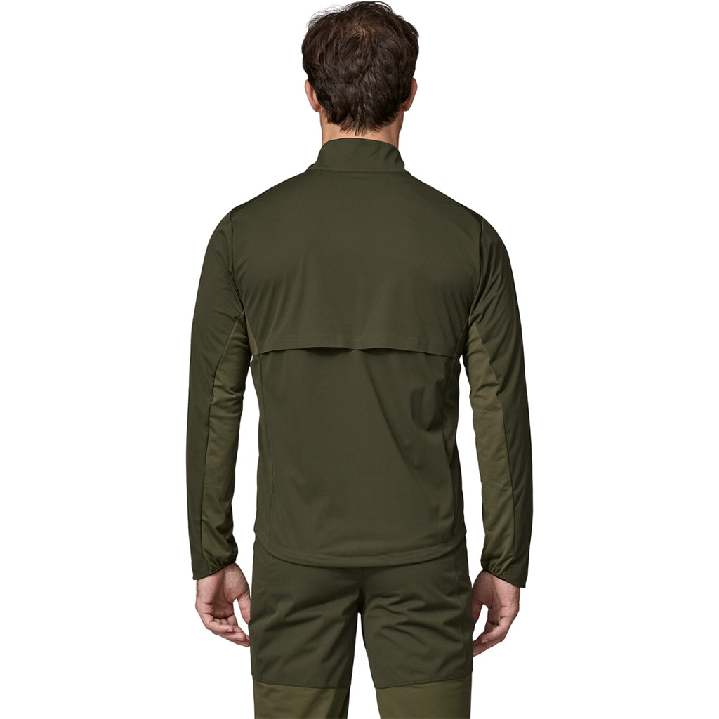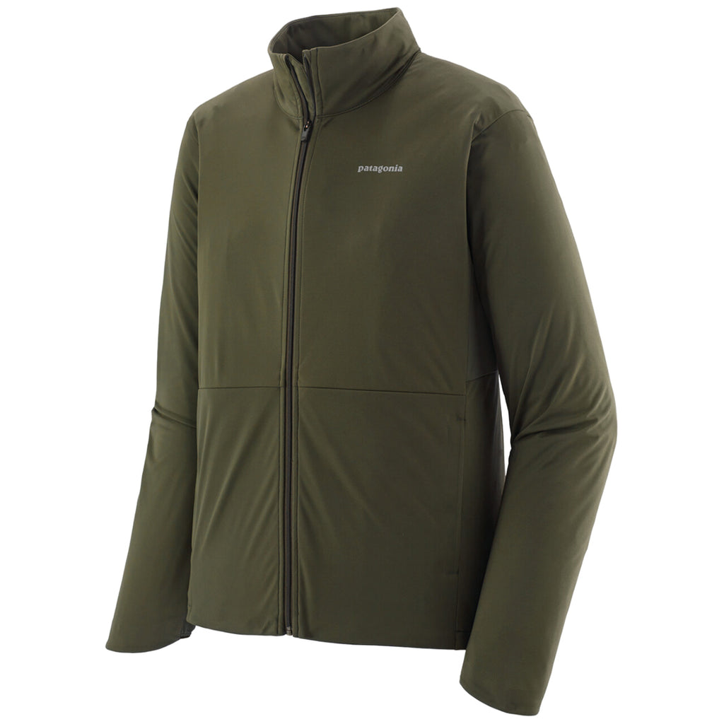 - Stretchy soft-shell fabric wards off wind, and a durable water repellent (DWR) finish that's made without intentionally added PFAS resists light precipitation