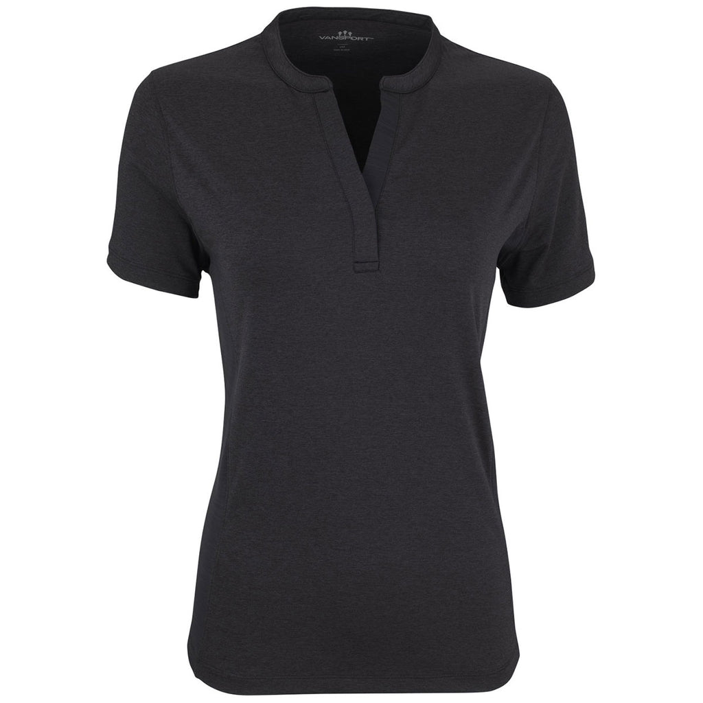 Enjoy a custom, high-end look with the Vansport Women's Black Pro Horizon Polo. This form flattering polo offers a feminine neckline and plenty of stretch for comfort. Whether spending a day in the office or playing a quick round of golf this polo has you covered. A bit of spandex in the material helps the shirt to move with you without affecting flexibility. Add a company logo to use this polo as employee apparel that is crisp, clean, and professional all day, every day.Corresponding Men's Style: Vansport Men's Black Pro Horizon Polo