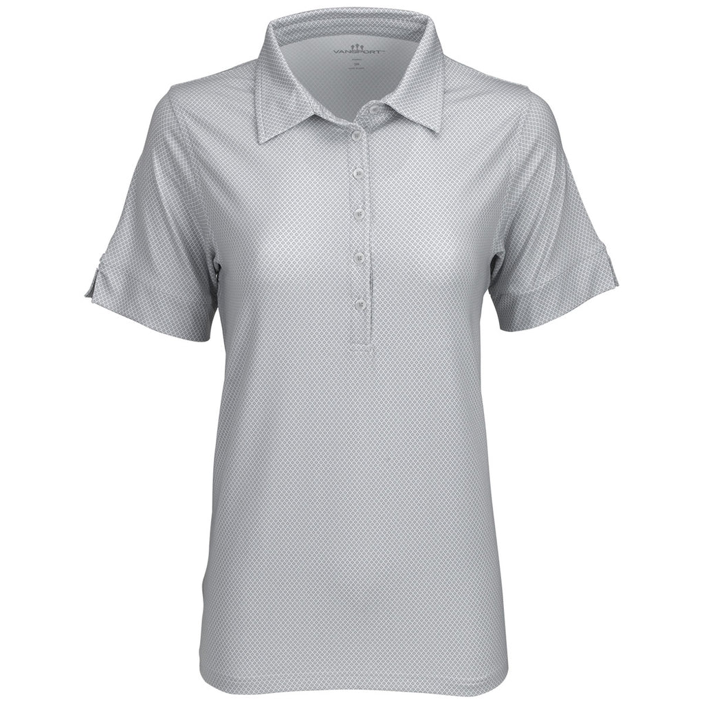 Design a custom embroidery for the Vansport Women's Grey/White Pro Eagle Polo to create an easy-to-wear look that is ready for the day. The short sleeve polo is lightweight, anti-microbial, and offers UV protection with an all-over diamond print. Hit the putting green, the back nine, or work in this versatile polo.Corresponding Men's Style: Vansport Men's Grey/White Pro Eagle Polo