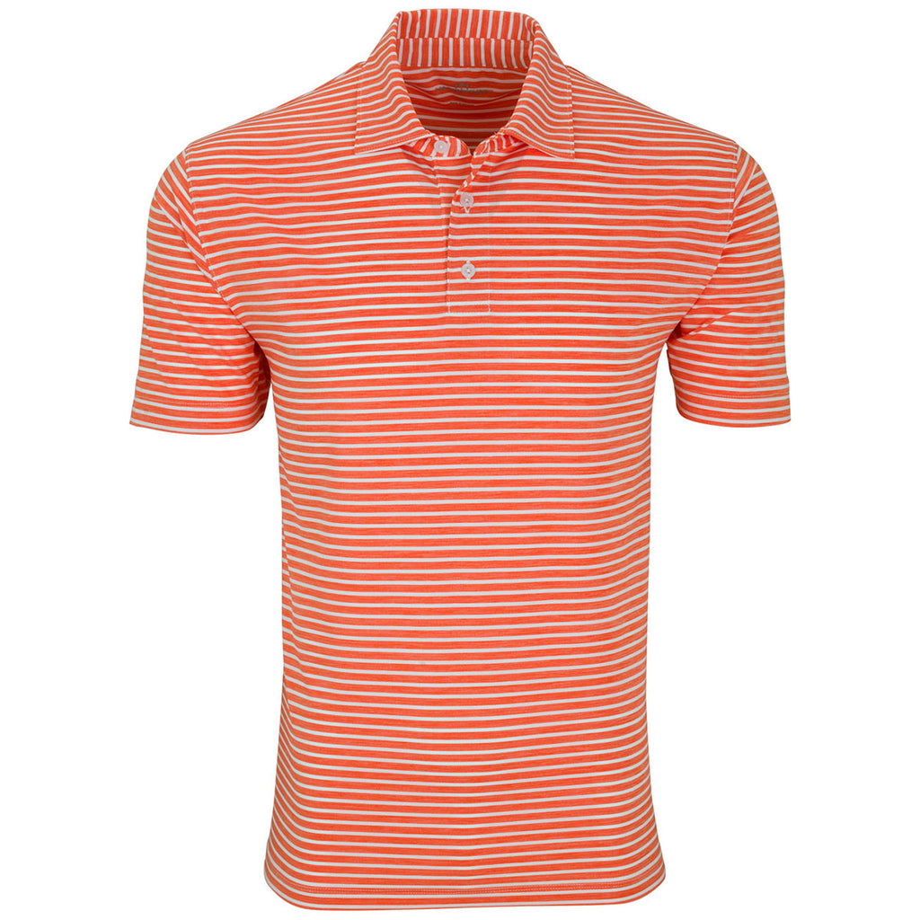 Hit the links in custom style with the Vansport Men's Sunset Orange Pro Riviera Polo made of a polyester rich spandex blend. This airy striped design will carry your embroidered custom logo with style and flair as part of your logoed apparel line whether at a golf shop, country club, or general apparel store. Complete with UV properties, moisture wicking, and a coastal vibe, this polo is a must have for the avid golfer or sportsman in your life. The self-goods collar with collar band complete the look.Corresponding Women's Style: Vansport Women's Sunset Orange Pro Riviera Polo