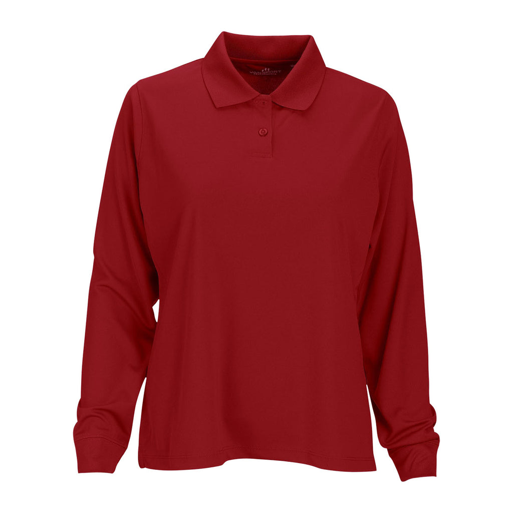 Vantage Women's Sport Red Omega Long Sleeve Solid Mesh Tech Polo