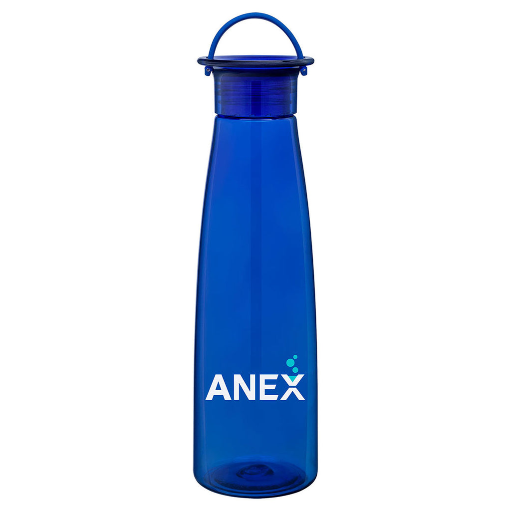 The H2Go Blue Sway Bottle 25 oz is eye-catching drinkware with a cutting-edge look that will keep your company name in people's minds. Order a bunch decorated with your corporate logo and hand them out at sponsored events. The colorful copolyester material will make this bottle stand out among all the others at the health club. The minimum order for this product is 48 pieces.Highlights