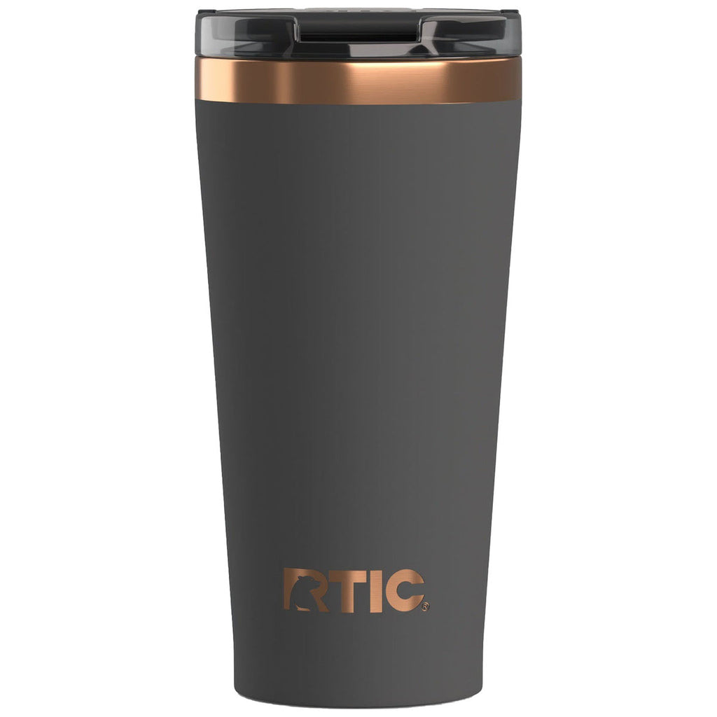 RTIC Light Black 18oz Happy Hour Pint Tumbler is the ultimate pint tumbler-with ceramic lining that protects the taste of your favorite brews. This insulated tumbler is made of 18/8 stainless steel with a quality, ceramic coating on the inside that protects beverages from metallic taste and smell. With a leak resistant threaded lid, double-wall, vacuum-sealed insulation, and an airtight seal, it locks in the cold for up to 24 hours. It also features our newest drinkware innovation: a soft touch finish that's as durable as it is comfortable. The smooth, grippy exterior feels great in your hands, while the tough, stainless steel body stands up to everyday wear and epic adventures. So whether you're sipping pool side or mountain side, this insulated tumbler is built to hold up-and feel good doing it. The lid is not recommended for use with hot liquids.