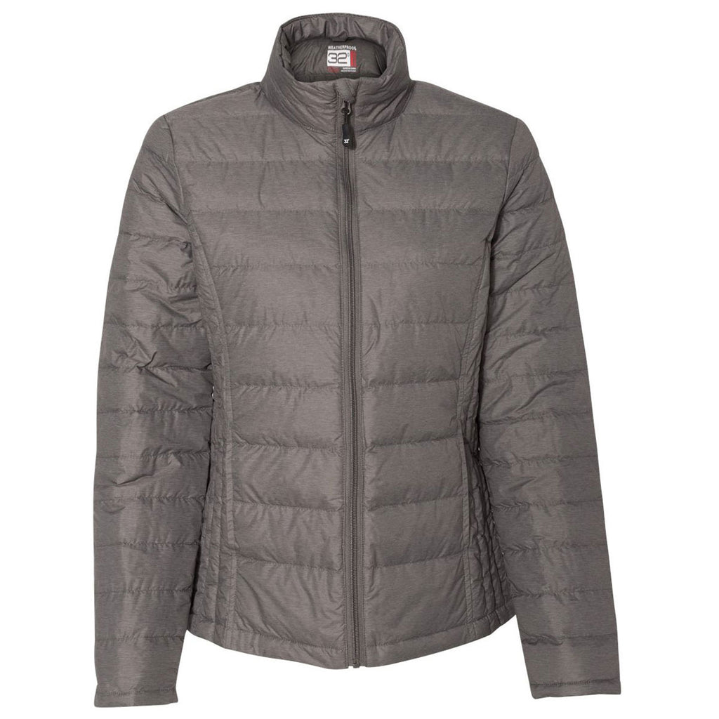 The company logo Weatherproof Women's Asphalt Melange 32 Degrees Packable Down Jacket combines comfortable warmth and extraordinary style in one. Features you'll find with the women's packable down jacket include 100% 380T high-density nylon, 90% duck down/10% feather filling, 550 fill power, front pockets and interior pockets, water-resistant capabilities, wind-resistant attributes, and a pouch for packing away when traveling. When you add an embroidery corporate logo to the jacket, you have a lovely finished product which is great for advertising your company name and can be handed out to employees as corporate apparel gifts.Corresponding Men's Style: Weatherproof Men's Asphalt Melange 32 Degrees Packable Down Jacket