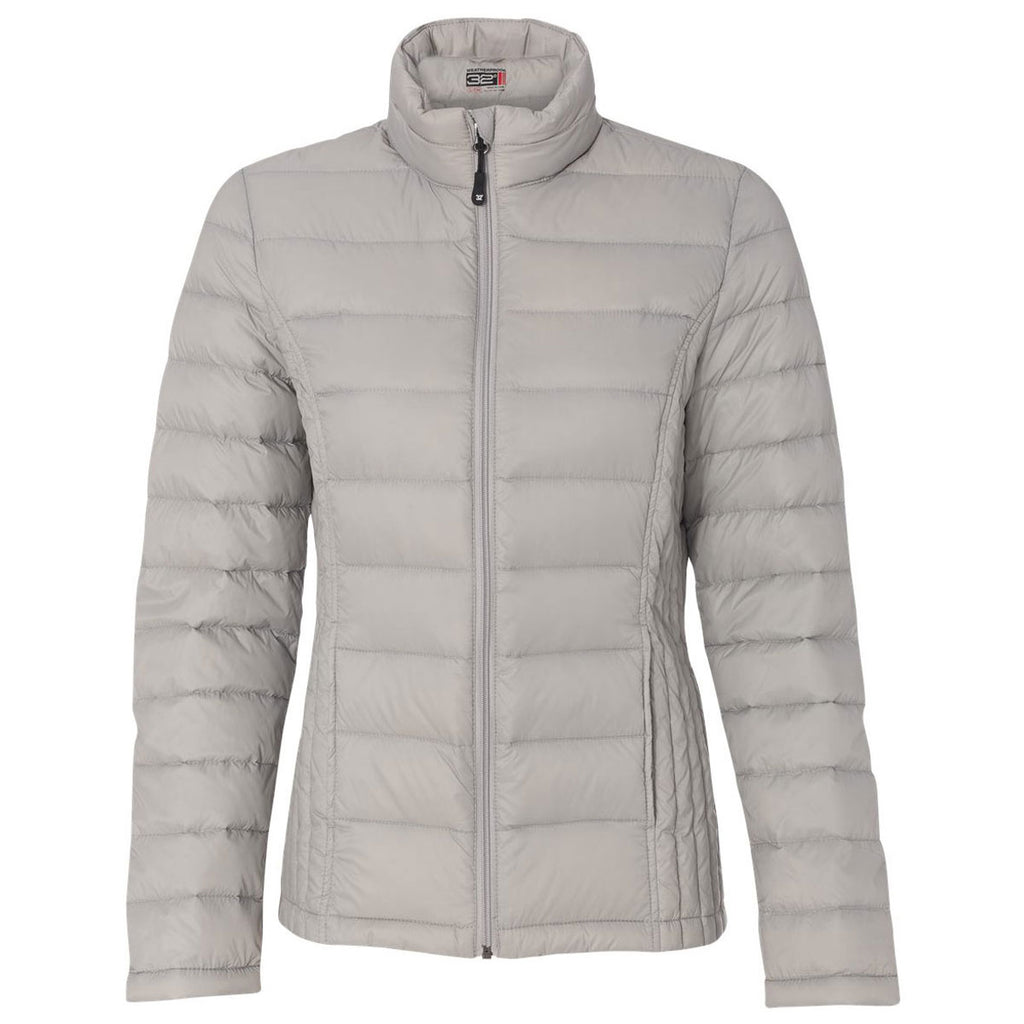 The company logo Weatherproof Women's Aluminum 32 Degrees Packable Down Jacket combines comfortable warmth and extraordinary style in one. Features you'll find with the women's packable down jacket include 100% 380T high-density nylon, 90% duck down/10% feather filling, 550 fill power, front pockets and interior pockets, water-resistant capabilities, wind-resistant attributes, and a pouch for packing away when traveling. When you add an embroidery corporate logo to the jacket, you have a lovely finished product which is great for advertising your company name and can be handed out to employees as corporate apparel gifts.Highlights
