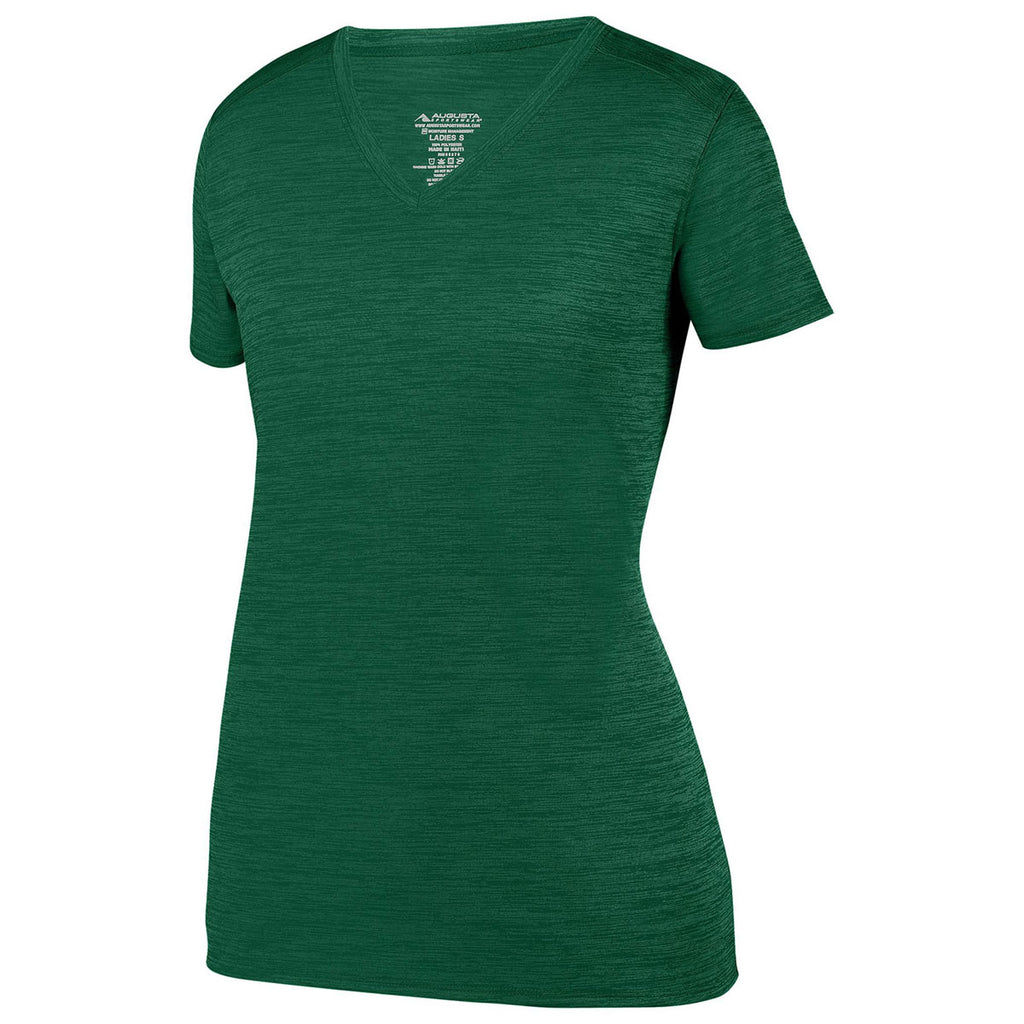 The custom logo Augusta Sportswear Women's Dark Green Shadow Tonal Heather Short-Sleeve Training T-Shirt is the perfect top to wear to yoga class, when out for a run or working out at the gym. With 12 vivid colors to choose from, there is bound to be the ideal color to match your gym apparel wear. Some of the features which will be appreciated with the short-sleeve training t-shirt include the 100% polyester heathered wicking knit fabric, stylish fit, pad print label, self-fabric v-neck collar, and set-in sleeves, to name a few. Add a screen print company logo to the front of the shirt and it's a wonderful advertising item as well. This is a great gift to hand out at the office as employee apparel wear.Corresponding Men's Style: Augusta Sportswear Men's Dark Green Shadow Tonal Heather Short-Sleeve Training T-Shirt