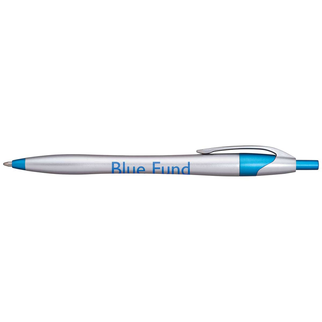 Need a new event giveaway? The custom Hub Pens Blue Trim Javalina Chrome Bright Pen with Black Ink is a truly functional item that won't simply end up in someone else's drawer and get forgotten as time goes by, making it a great item to use as a promotional material for your company. Create the ultimate branding - let us know and we'll add your custom logo on the pen's imprint area. The customized piece can also be used as an employee gift!
