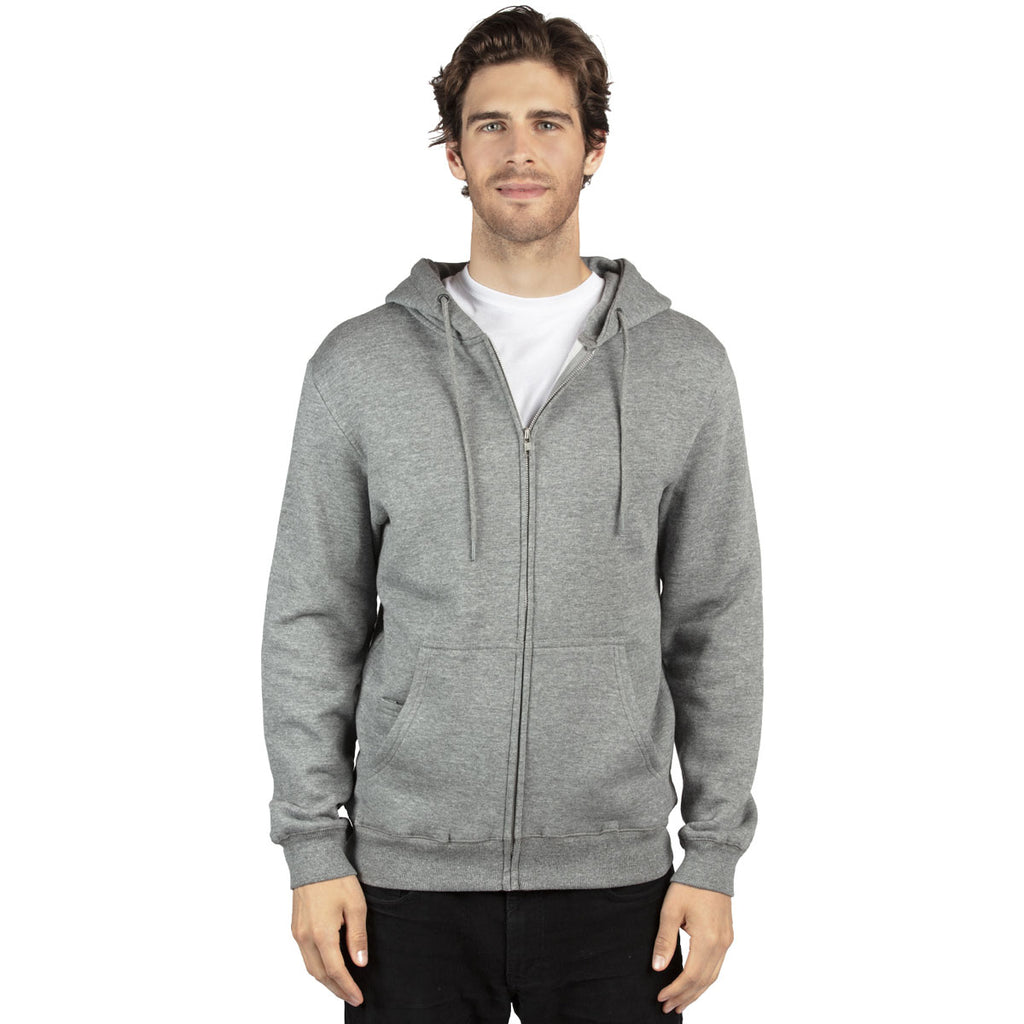 Your screen print will stand out on the Threadfast Unisex Heather Grey Ultimate Fleece Full-Zip Hooded Sweatshirt. This versatile full-zip sweatshirt is perfect as it is partially made of recycled materials and offers a retail fit with tearaway label for comfort. Add a custom logo to create a unique brand for your company or to enjoy team gear that matches for warm-ups. The three paneled self fabric hood adds warmth and protection if the weather makes a turn. The simplicity of this full zip hooded sweatshirt adds to its functionality as it can be used for daily wear, athletic wear, or general wear as you go about your day.Highlights
