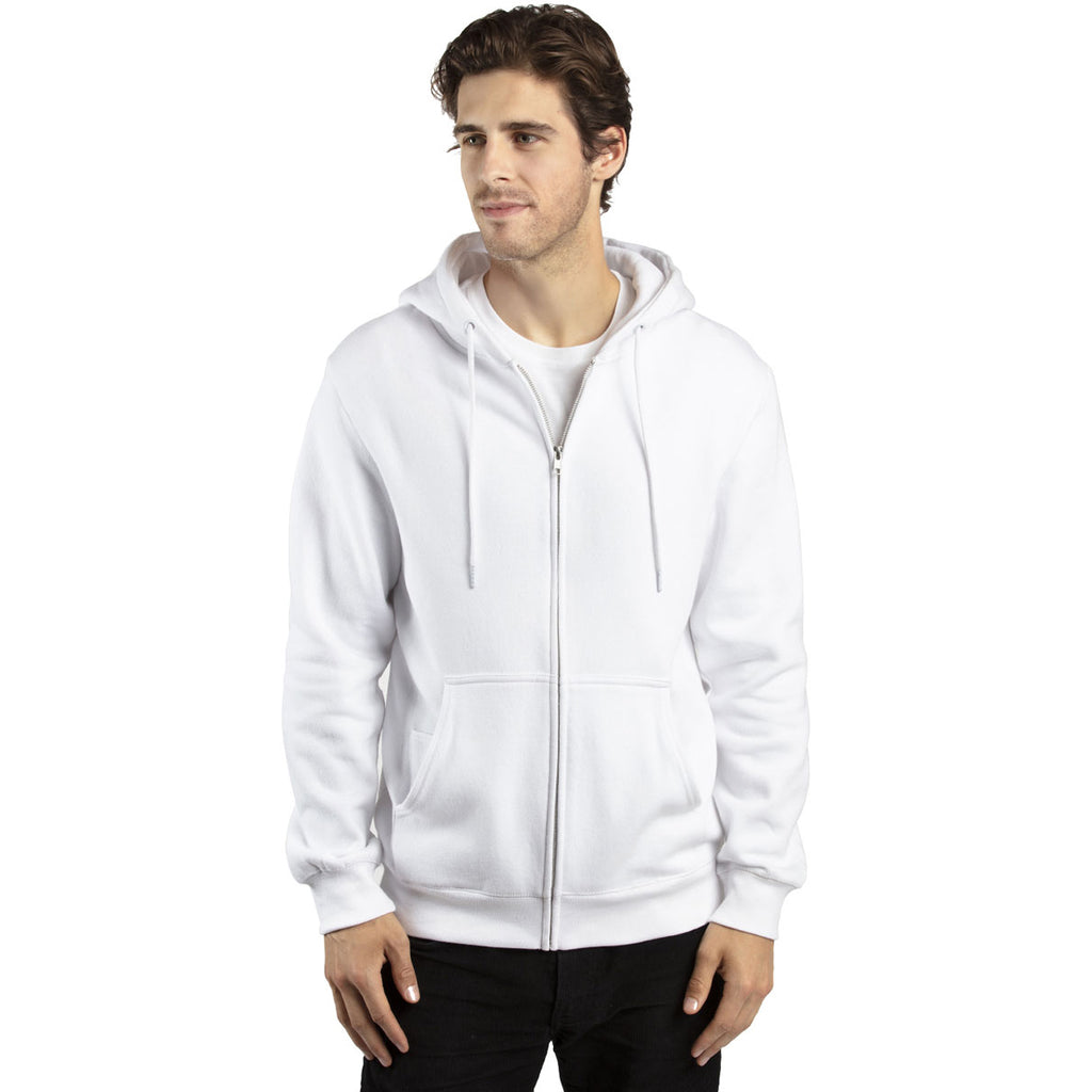 Your screen print will stand out on the Threadfast Unisex White Ultimate Fleece Full-Zip Hooded Sweatshirt. This versatile full-zip sweatshirt is perfect as it is partially made of recycled materials and offers a retail fit with tearaway label for comfort. Add a custom logo to create a unique brand for your company or to enjoy team gear that matches for warm-ups. The three paneled self fabric hood adds warmth and protection if the weather makes a turn. The simplicity of this full zip hooded sweatshirt adds to its functionality as it can be used for daily wear, athletic wear, or general wear as you go about your day.Highlights