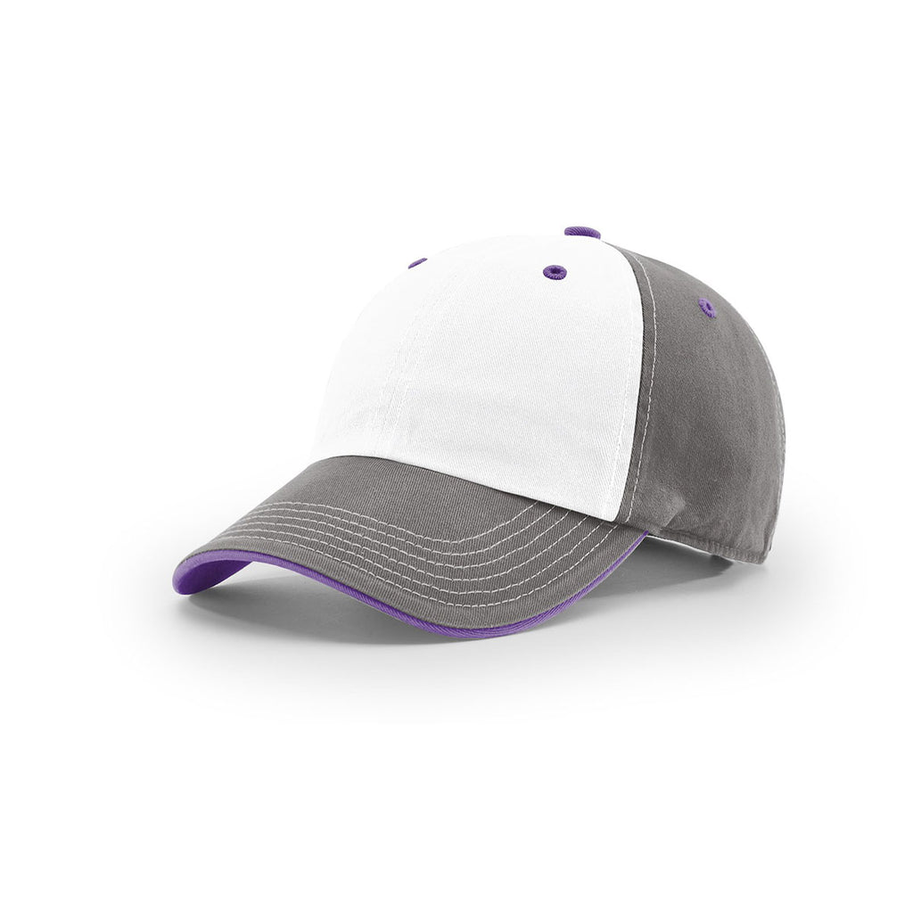 Richardson White/Charcoal/Purple Lifestyle Unstructured Washed Chino Cap