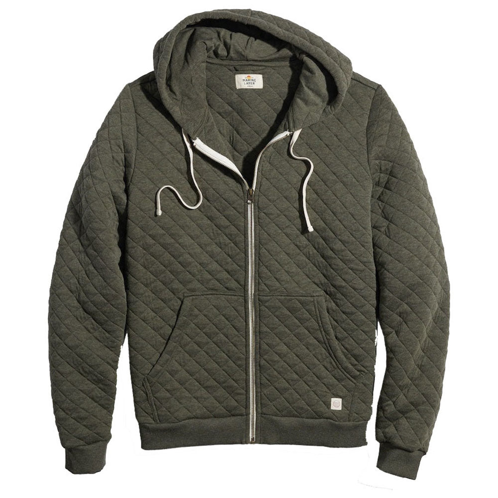 Marine Layer Men's Olive Heather Corbet Quilted Full Zip Hoodie